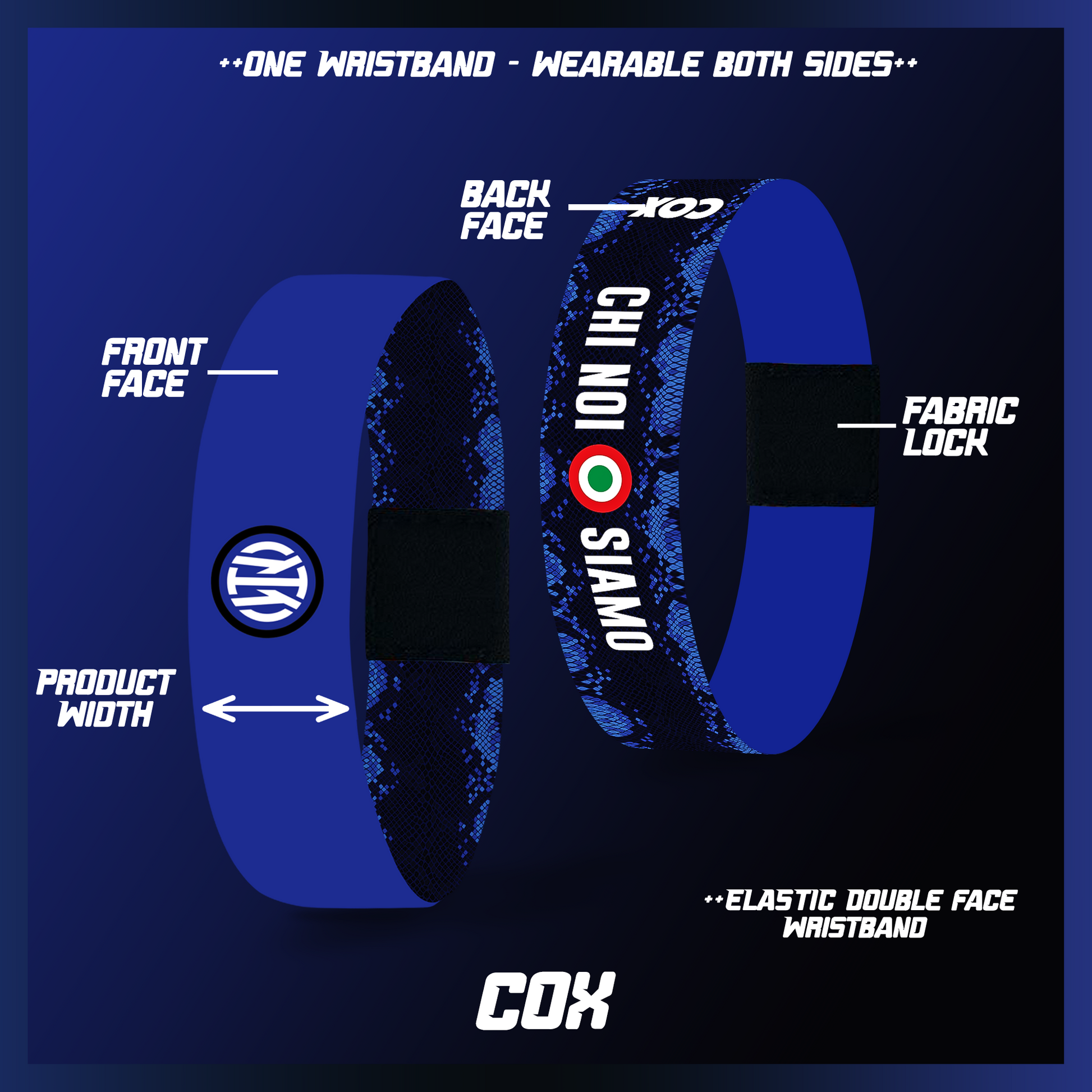 Double Face Wristband, Wearable Both Sides.